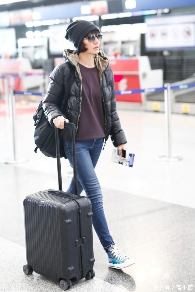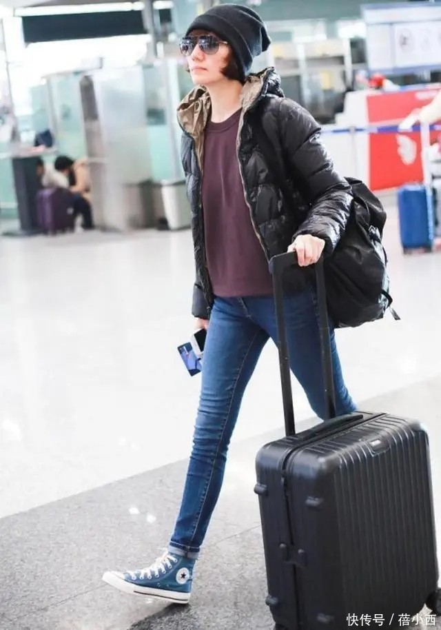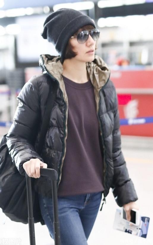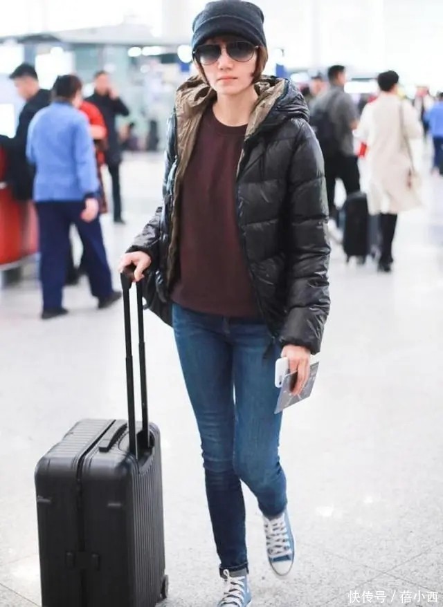 在机场里,袁泉选择了黑色的羽绒服,这件羽绒服的设计简约而不失时尚感,保暖的同时又不失潮流。她将羽绒服的拉链拉开,露出里面的打底衫,既展现了她对细节的把握,又增添了几分随性的时尚感。